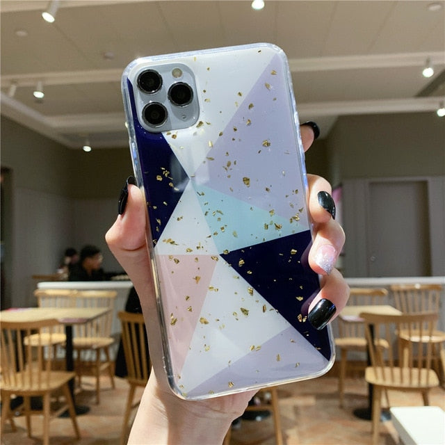 Geometric Marble Glitter Confetti/Foil Phone Case/Cover For iPhone 11 Pro Max X XS XR Xs Max 6 6s 7 8 Plus