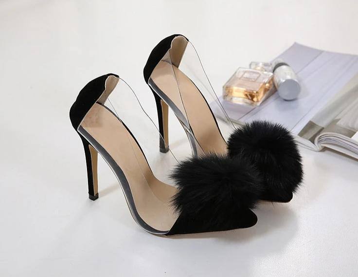 Fluffy Clear | Transparent Slip-On Thin Pointed Heel High | Pump