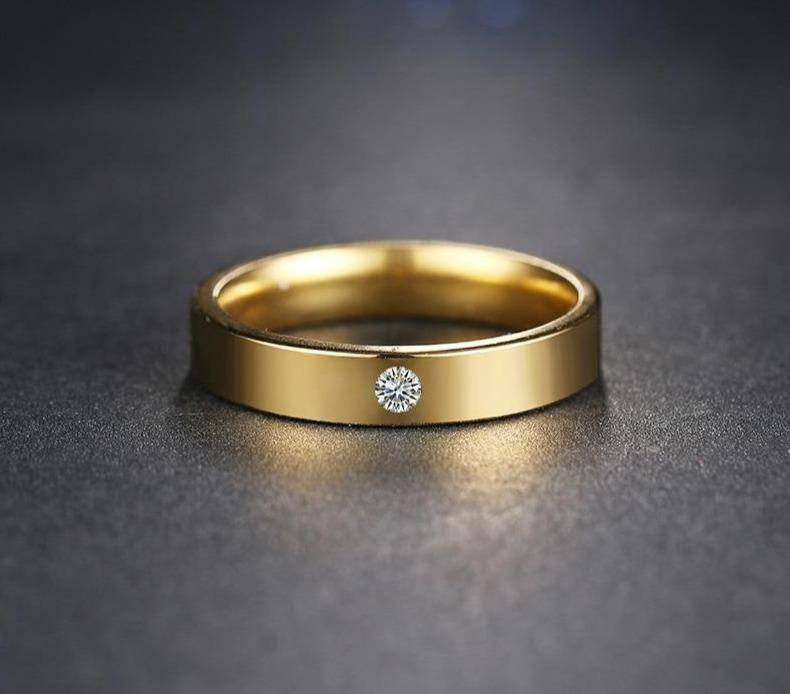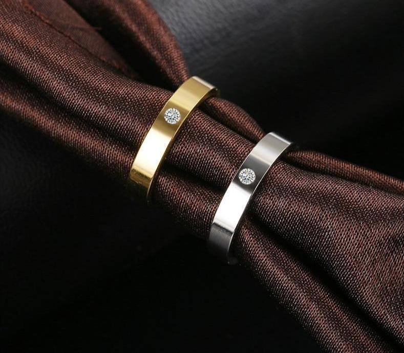 Simple Cubic Zircon Fashion Jewelry Stainless Steel Ring For Women- Gold/Silver