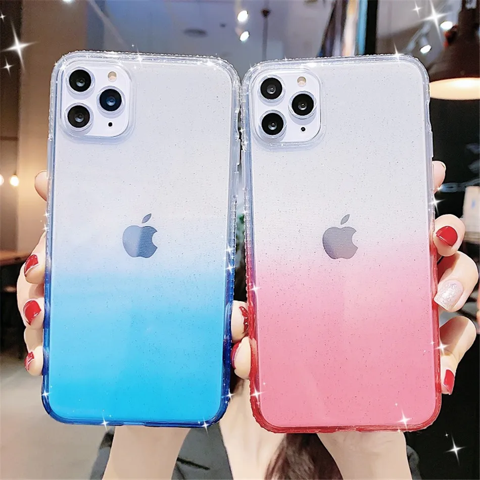 Colorful Clear Gradient Glitter Phone Case For iPhone 11 Pro Max X XS XR Xs Max 7 8 6 6s Plus Soft Cover